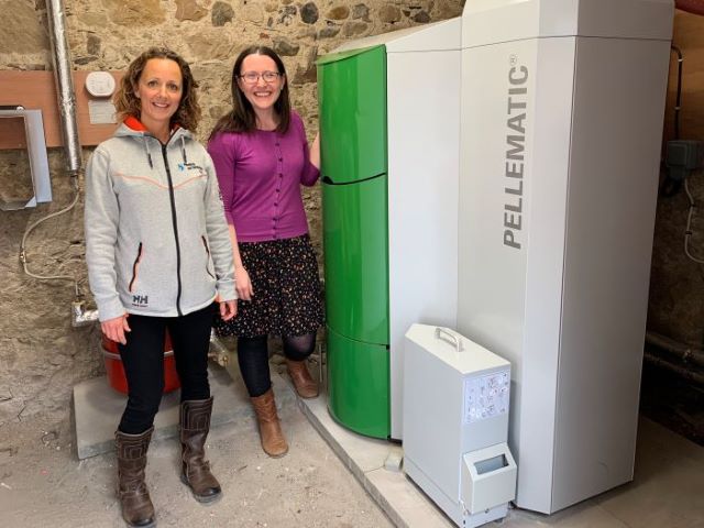 Alison (right) shows off the new biomass boiler