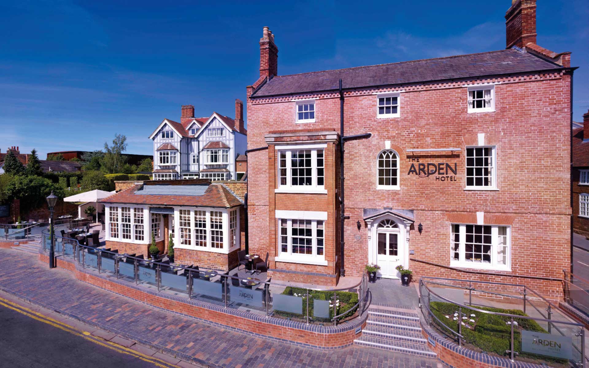 The Arden Hotel is a 4-star boutique hotel located in the heart of Stratford-upon-Avon, situated directly opposite the Royal Shakespeare Theatre. Part of the Eden Hotel Collection, it features 45 luxury bedrooms, award-winning dining, and a private terrace overlooking the River Avon.
